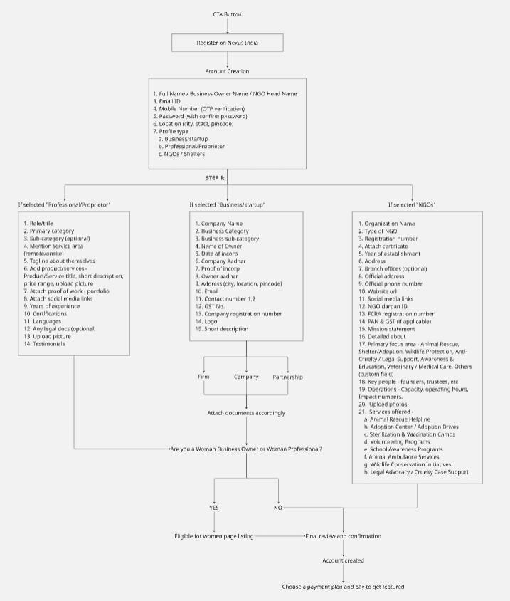 I designed a step-by-step guided registration flow that adapts based on the user type.